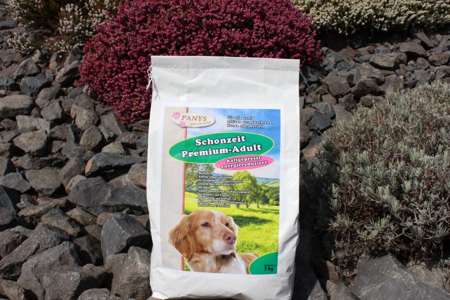 PANYS Schonzeit Premium-Adult kaltgepresst ist als Alleinnahrung für ausgewachsene Hunde aller Rassen mit reduziertem Energiebedarf, sowie für ältere Hunde zugelassen.