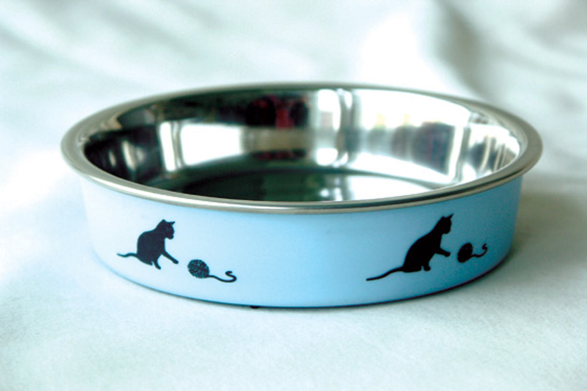 Schöner und praktischer Edelstahlnapf in der gewählten Farbe mit Katzenmotiven.