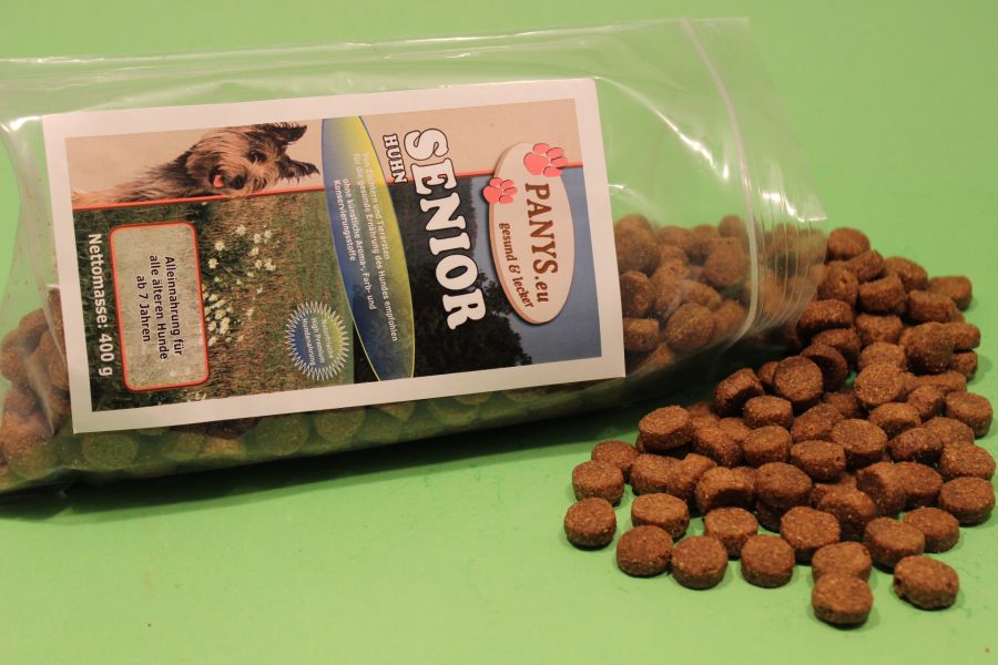 Fleischanteil: Nur Huhn Naturfrische High Premium Hundenahrung.Glutenfreie Rezeptur, Alleinnahrung für alle älteren Hunde (ab 7 Jahren), mit reduziertem Energiebedarf. PANYS Trockennahrung ist ernährungsphysiologisch ausgewogen und enthält alle wichtigen Inhaltsstoffe, die der Hund für eine ausgewogene Ernährung benötigt. Natürlich haben wir auch hier auf künstlich zugesetzte Aroma- und Farbstoffe verzichtet. Vorteile der PANYS Trockennahrung: Zu 100% in Deutschland produziert High-Premium-Qualität Ernährungsphysiologisch ausgewogen Lebensmitteltaugliche Rohstoffe. Ohne Zusatz künstl. Aroma- & Farbstoffe. Zu 100 % ohne Gentechnologie. Zu 100 % ohne Tierversuche. Für ein aktives Hundeleben