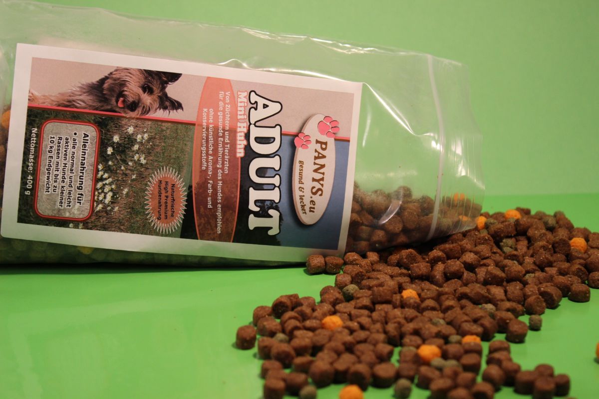 Fleischanteil: nur Huhn! Alleinnahrung für normal und leicht aktive, ausgewachsene Hunde kleiner Rassen bis 10 kg Endgewicht. Die enthaltenen Zutaten können sich zudem positiv auf den Stoffwechsel, die Verdauung und das Immunsystem auswirken. PANYS Trockennahrung ist ernährungsphysiologisch ausgewogen und enthält alle wichtigen Inhaltsstoffe, die der Hund für ein aktives Leben benötigt. Vorteile der PANYS Trockennahrung: Zu 100% in Deutschland produziert High-Premium-Qualität Ernährungsphysiologisch ausgewogen Lebensmitteltaugliche Rohstoffe. Ohne Zusatz künstl. Aroma- & Farbstoffe. Zu 100 % ohne Gentechnologie. Zu 100 % ohne Tierversuche. Für ein aktives Hundeleben